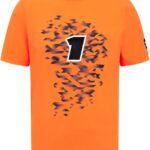 Max Verstappen T-shirt, speciale editie, uitgebracht voor Grand Prix Singapore, oranje kleur, nummer 1 driver design Max VerstappenNummer 1, Driver print ontwerpBiologisch katoen