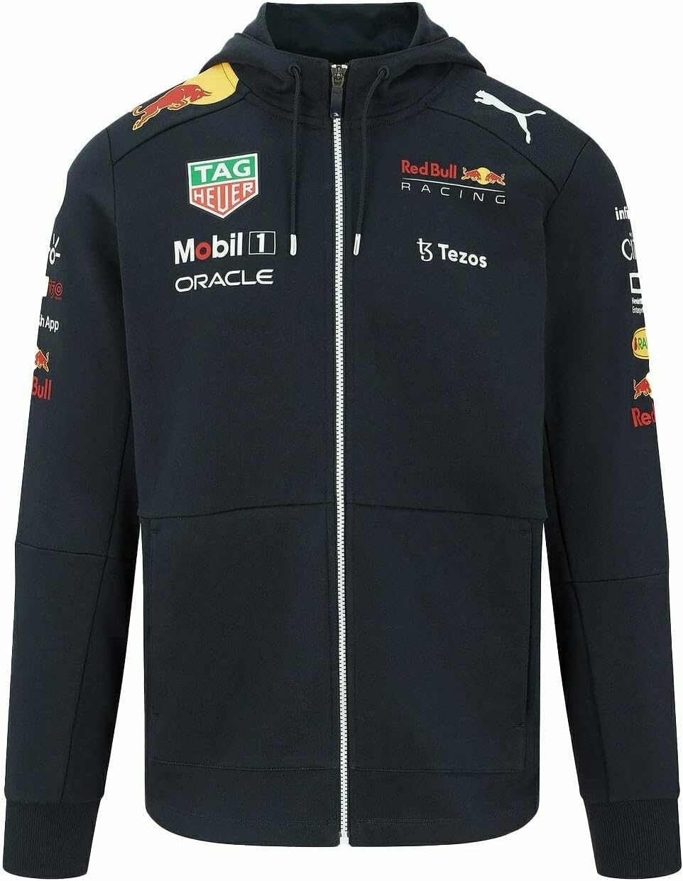 Perfect dagelijks gebruik terwijl het er nog steeds uitziet, het sweatshirt met capuchon van het team is ontworpen met een doorlopende contrasterende ritssluiting, logo’s van sleutelsponsors en Red Bulls Dynamic Bull-graphic die moedig aan de achterkant wordt gepresenteerd. Combineer dit belangrijke item met het clic Red Bull T-shirt voor die complete fanlook.