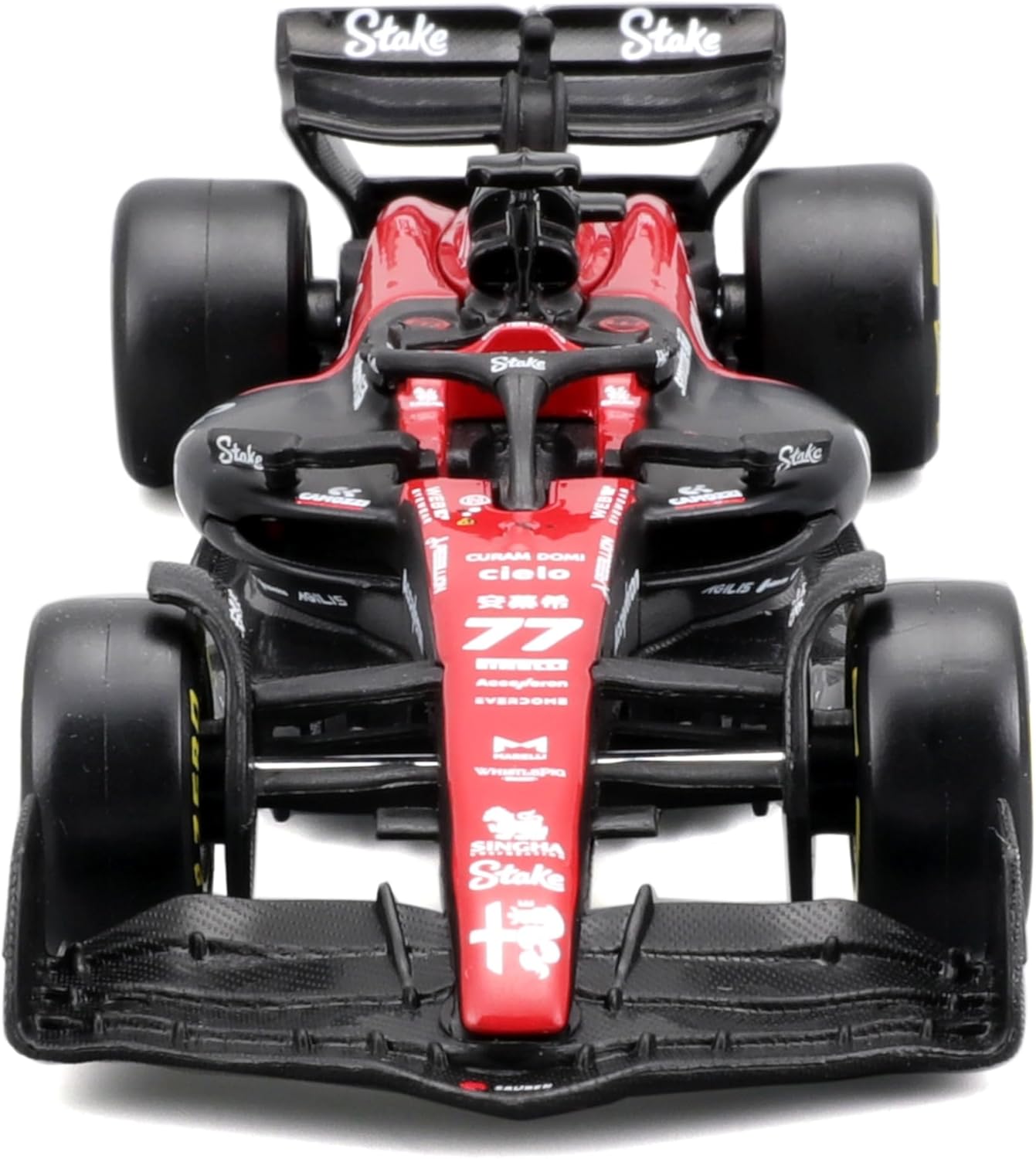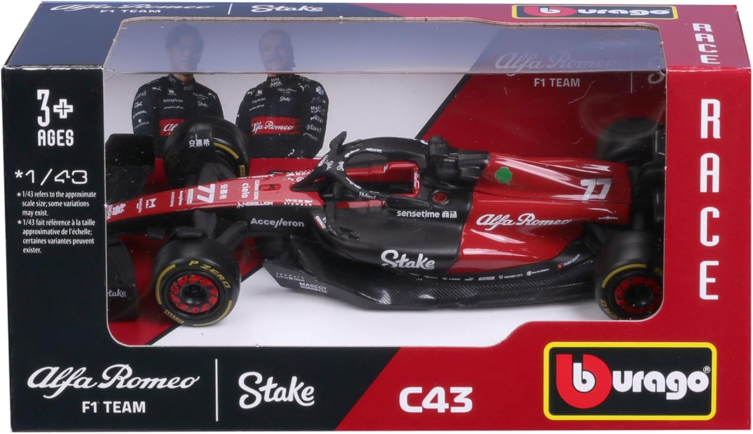 Beschrijving Een fijn bewerkte replica van een Alfa Romeo F1 Team Stake C43 auto’s onder leiding van Bottas. Deze gegoten replica op schaal 1:43 herstelt de karakteristieke vorm van de F1-auto perfect en vangt elke aerodynamische curve en lijn vast zoals deze op het werkelijke voertuig kan worden gezien. De detailnauwkeurigheid op het oppervlak is ongelooflijk, met authentieke sponsors en perfect nagemaakte racestickers.