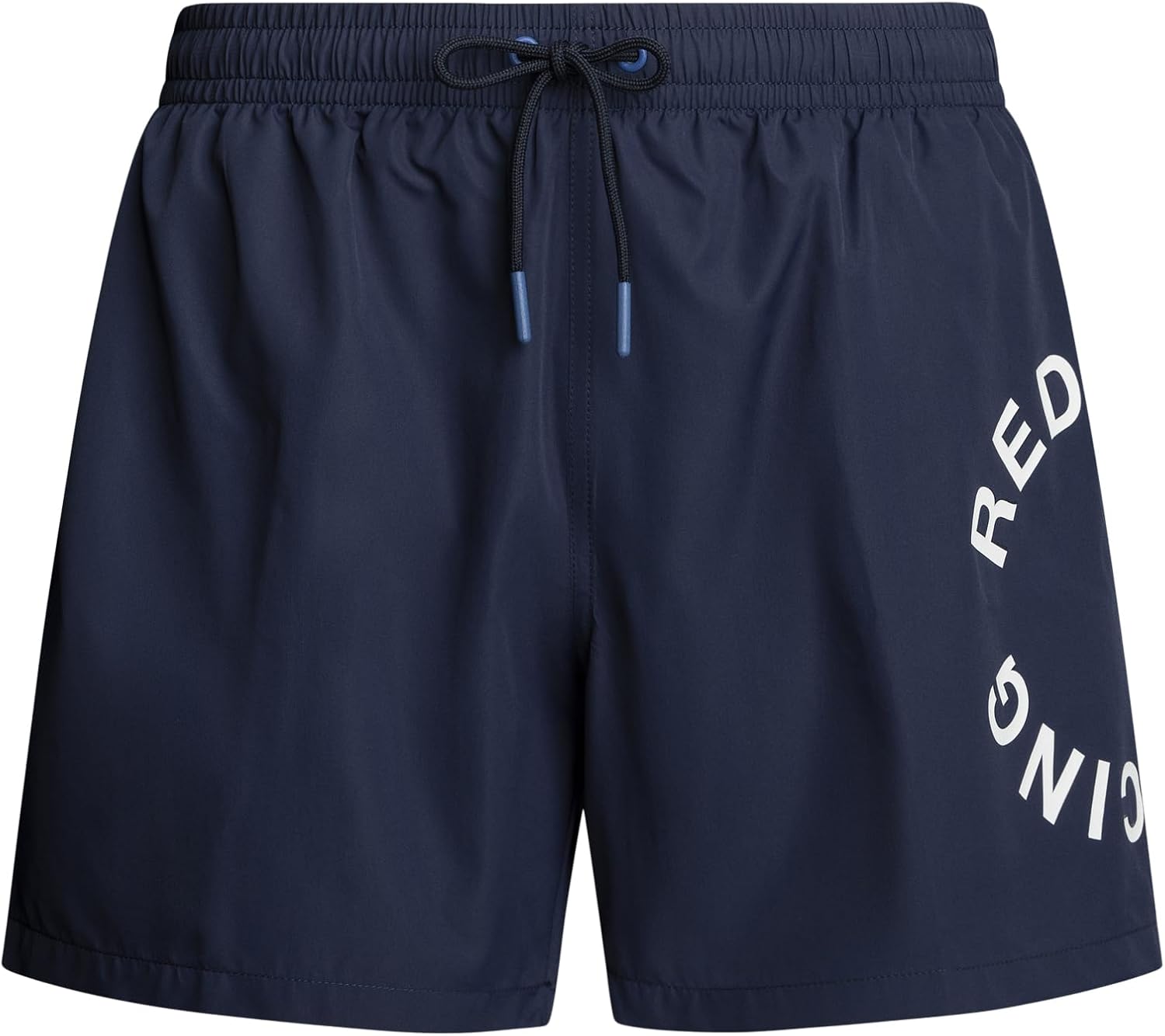 Solide zwembroek gemaakt van een sneldrogende gerecyclede polyester stof met een technisch handgevoel, volledig elastisch met een contrasterende binnenband, stevige trekkoorden met rubberen uiteinden en oogjes. Met cirkelprint op het linkerbeen, opgestikte achterzak en binnenzak.